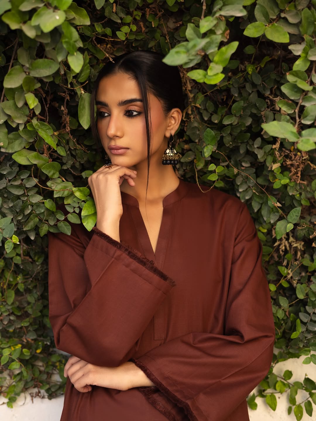 Embrace understated elegance with the Coco Farshi Salwar Set by House of Mish, crafted from soft and breathable cotton. The rich cocoa hue brings warmth and depth to this timeless silhouette, designed for effortless sophistication.